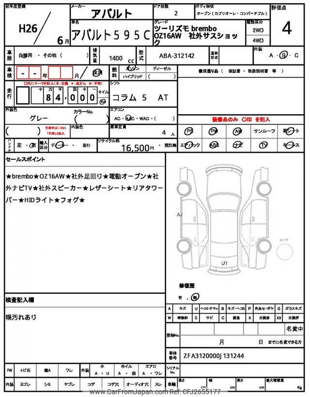 Abarth 595 2014 for sale in Malawi (Mwk. 9,035,723)