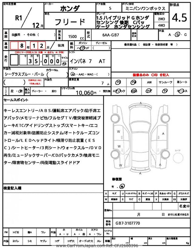 Honda Freed 2019 for sale in Malawi (Mwk. 17,775,842)
