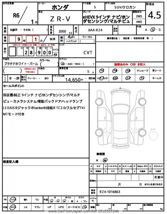 Honda ZR-V 2024 for sale in Malawi (Mwk. 27,822,550)