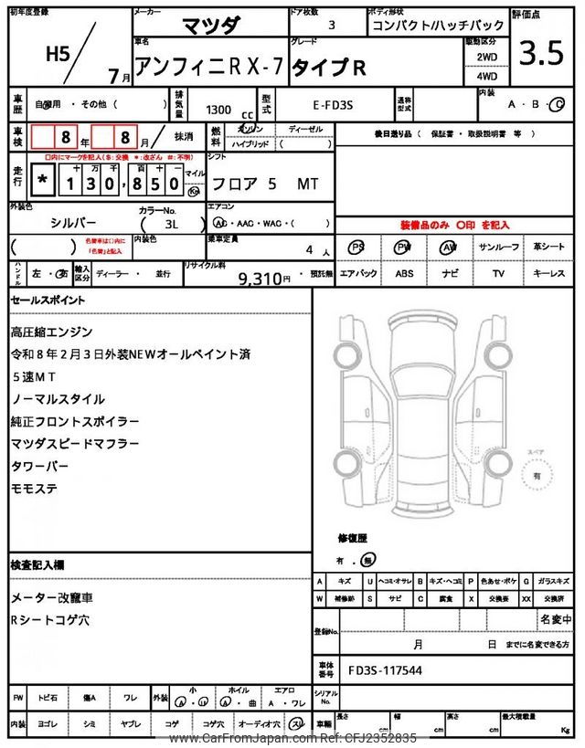 Mazda Efini RX-7 1993 for sale in Malawi (Mwk. 36,851,952)
