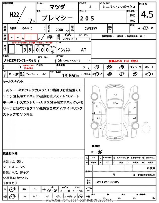 Mazda Premacy 2010 for sale in Malawi (Mwk. 6,946,506)