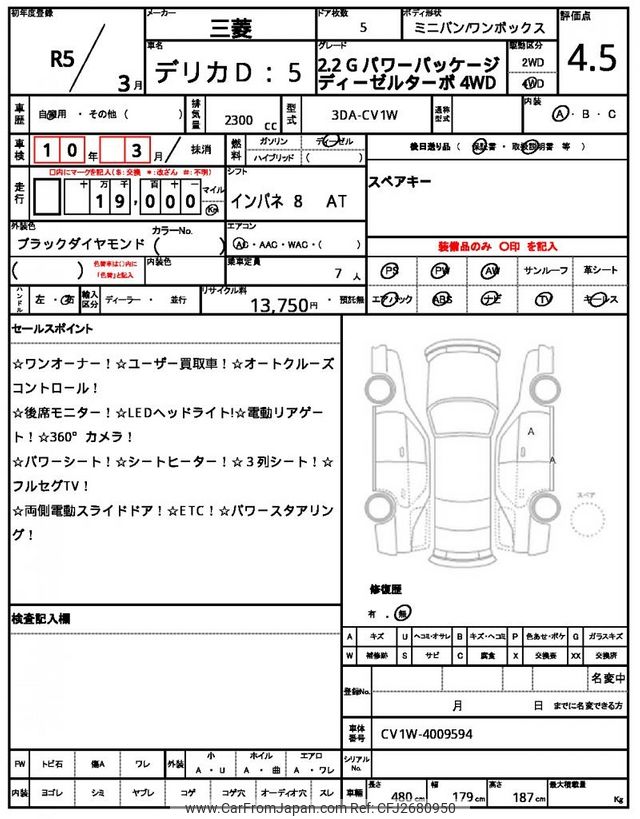 Mitsubishi Delica D5 2023 for sale in Malawi (Mwk. 39,652,932)