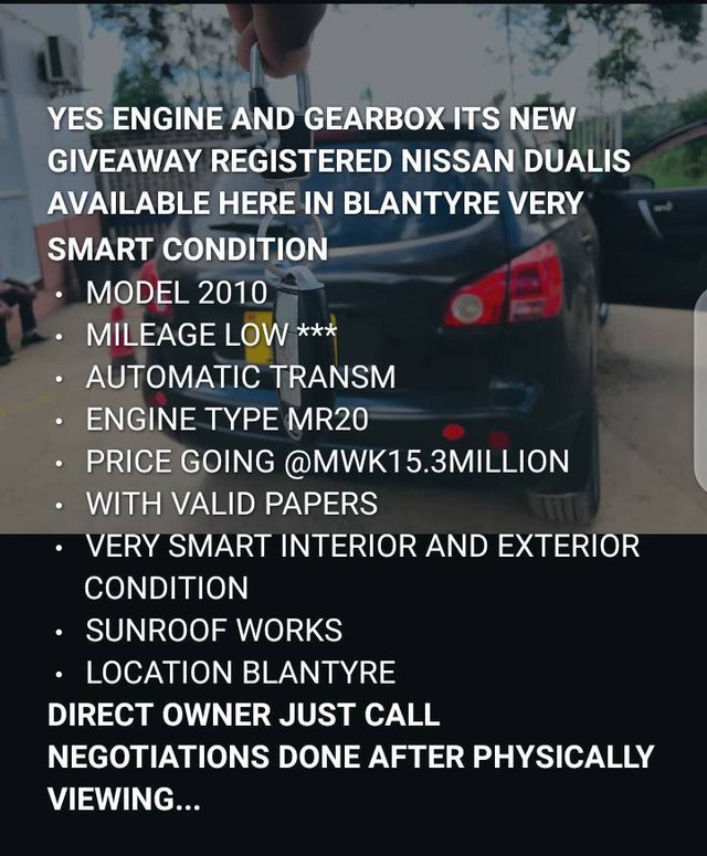 Nissan Dualis 2013 for sale in Malawi (Mwk. 15,300,000)