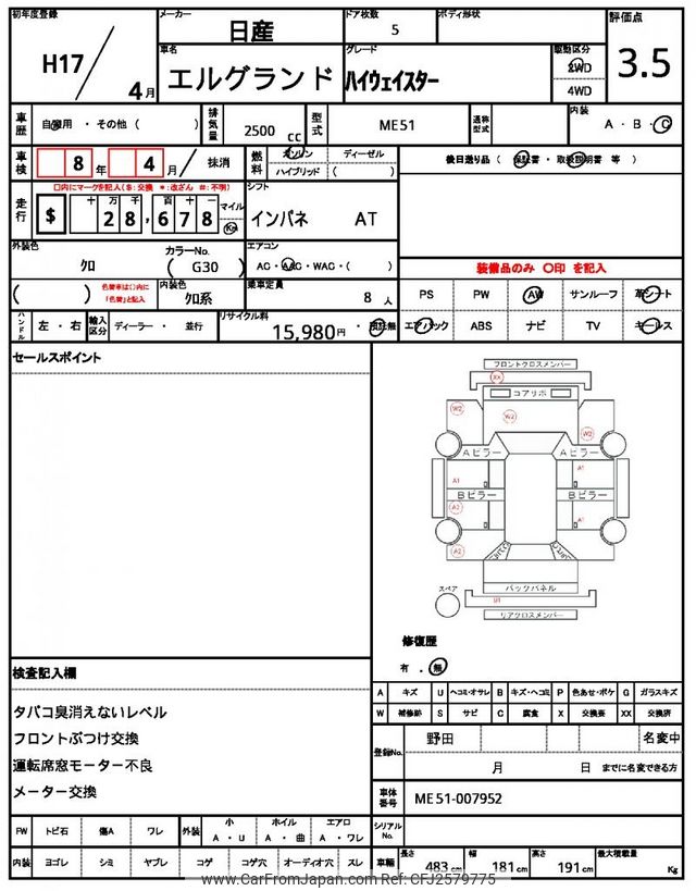 Nissan Elgrand 2005 for sale in Malawi (Mwk. 6,341,922)