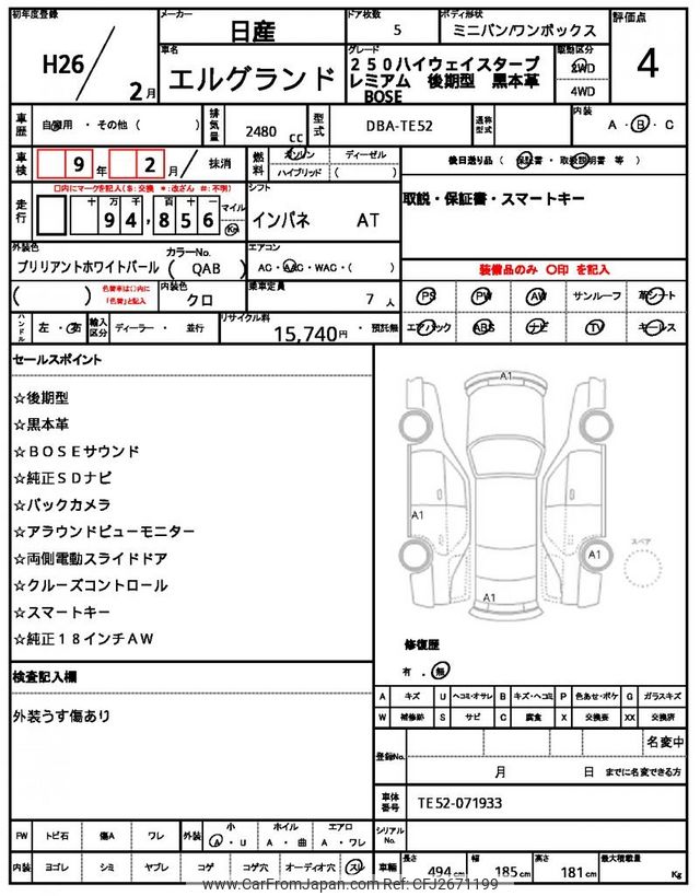 Nissan Elgrand 2014 for sale in Malawi (Mwk. 14,325,840)