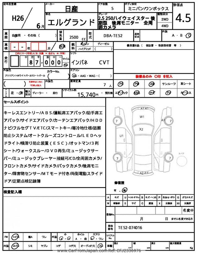 Nissan Elgrand 2014 for sale in Malawi (Mwk. 13,802,079)