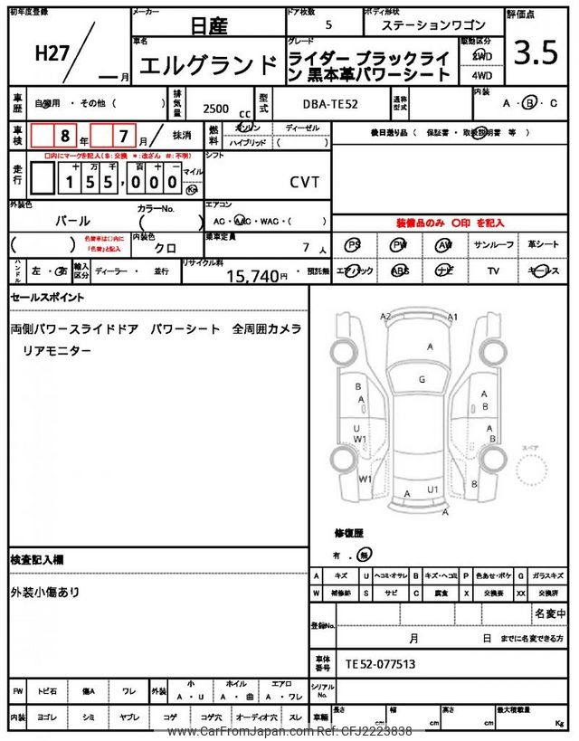 Nissan Elgrand 2015 for sale in Malawi (Mwk. 9,549,814)