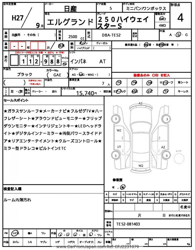 Nissan Elgrand 2015 for sale in Malawi (Mwk. 11,463,506)