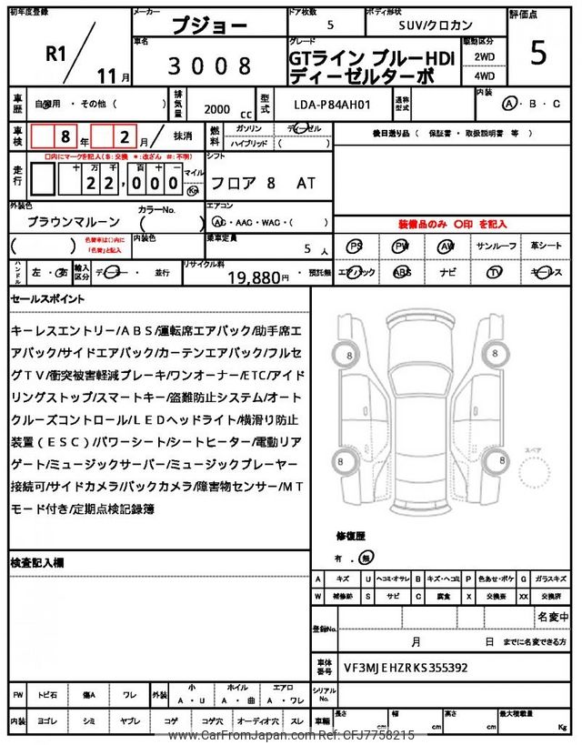 Peugeot 3008 2019 for sale in Malawi (Mwk. 21,188,736)