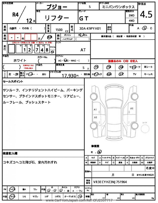 Peugeot Rifter 2022 for sale in Malawi (Mwk. 28,498,904)