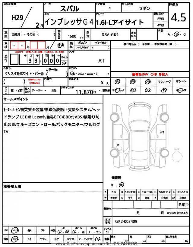 Subaru Impreza G4 2017 for sale in Malawi (Mwk. 10,712,589)