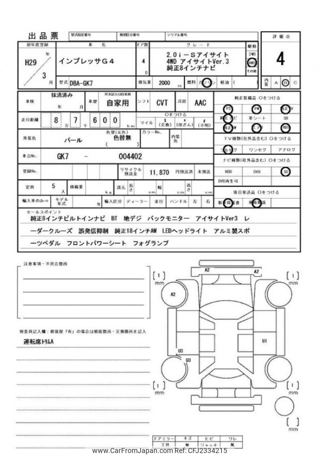 Subaru Impreza G4 2017 for sale in Malawi (Mwk. 12,689,063)