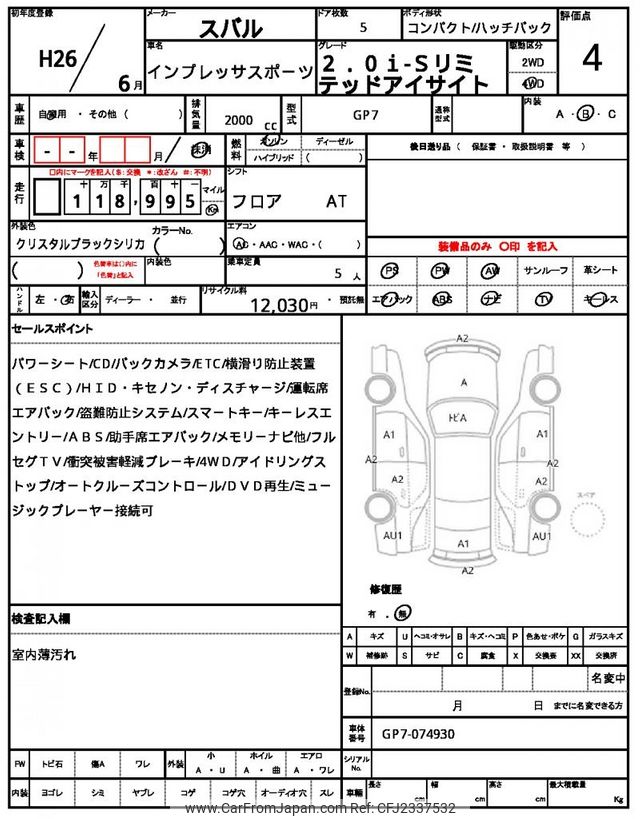 Subaru Impreza Sports 2014 for sale in Malawi (Mwk. 6,647,127)