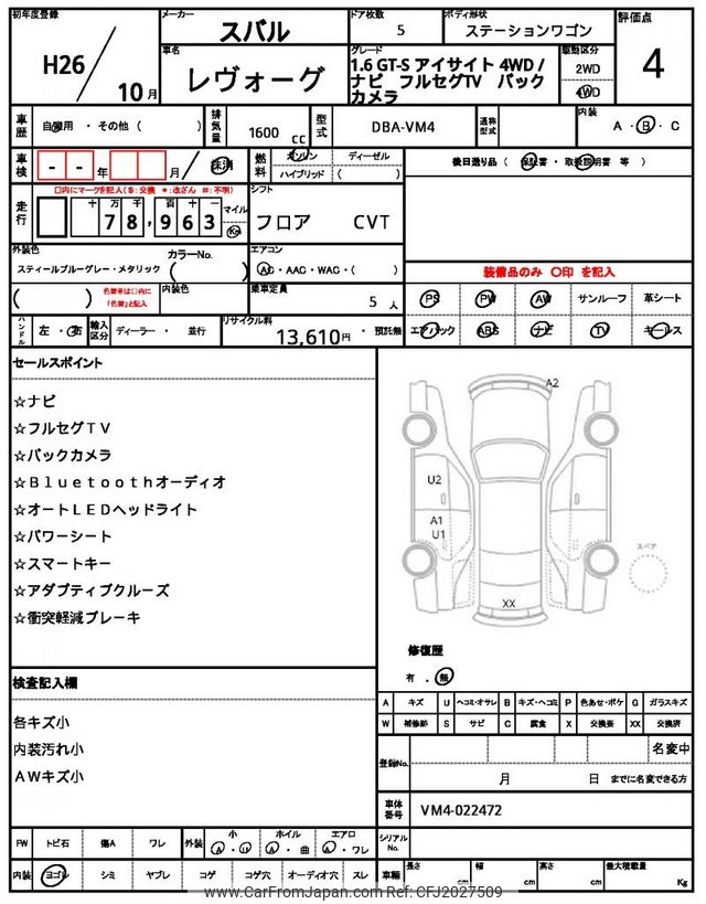 Subaru Levorg 2014 for sale in Malawi (Mwk. 12,050,372)