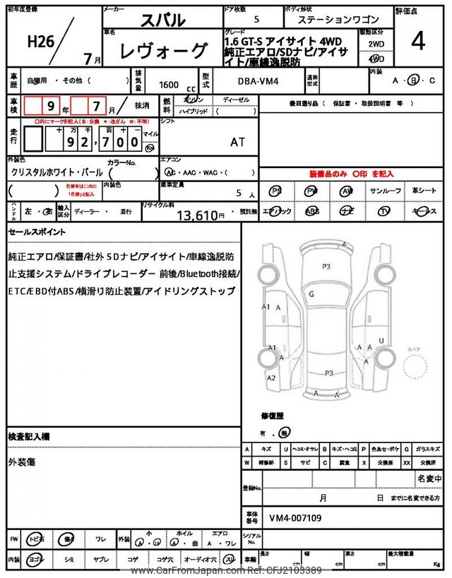Subaru Levorg 2014 for sale in Malawi (Mwk. 11,013,866)