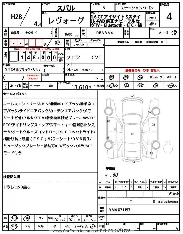 Subaru Levorg 2016 for sale in Malawi (Mwk. 7,334,967)