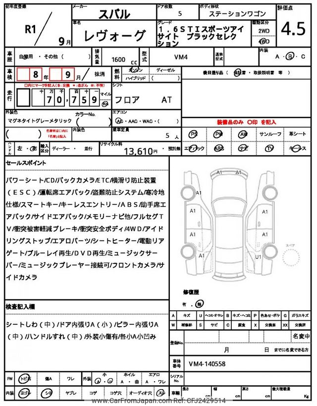 Subaru Levorg 2019 for sale in Malawi (Mwk. 18,317,384)