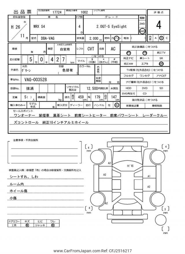 Subaru Wrx S4 2014 for sale in Malawi (Mwk. 17,447,192)
