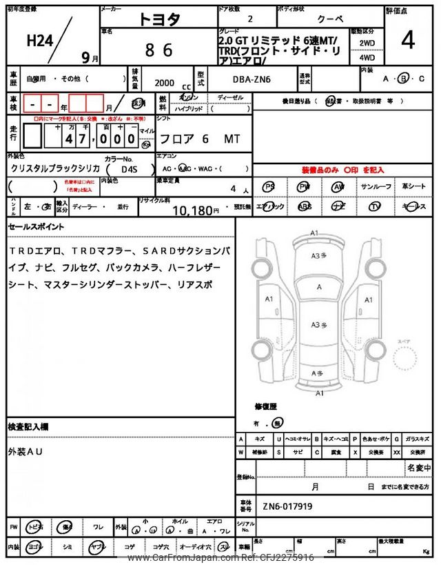 Toyota 86 2012 for sale in Malawi (Mwk. 18,591,300)