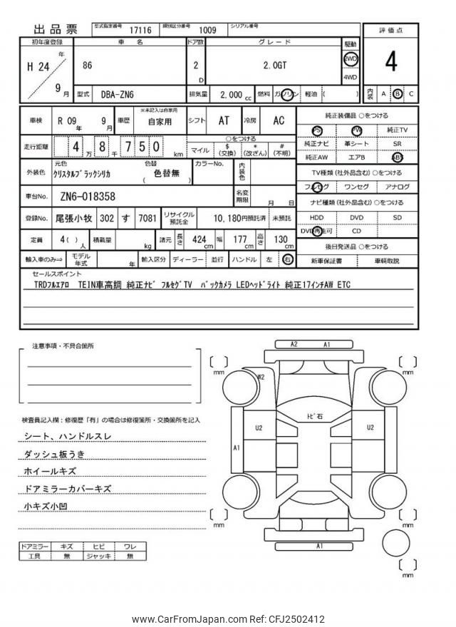 Toyota 86 2012 for sale in Malawi (Mwk. 16,452,934)