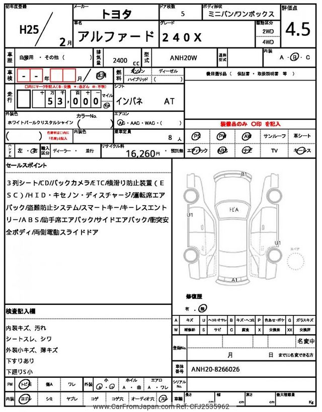 Toyota Alphard 2013 for sale in Malawi (Mwk. 13,009,302)