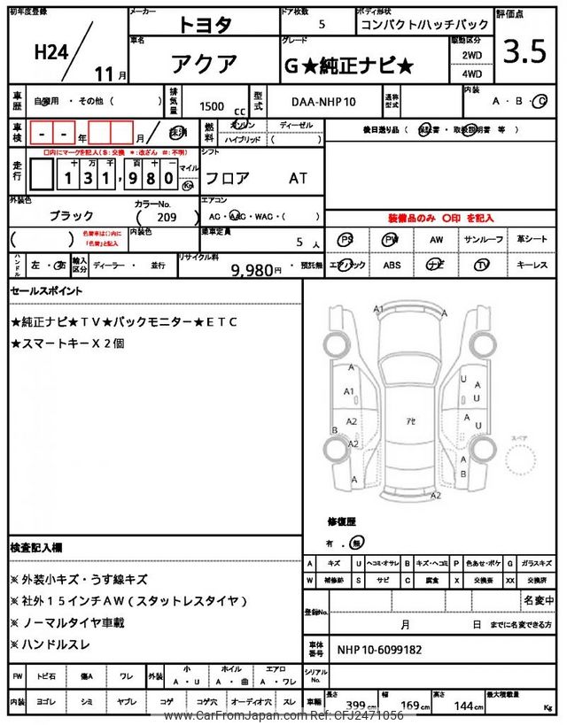 Toyota AQUA 2012 for sale in Malawi (Mwk. 4,932,310)