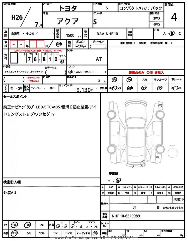 Toyota AQUA 2014 for sale in Malawi (Mwk. 9,230,906)