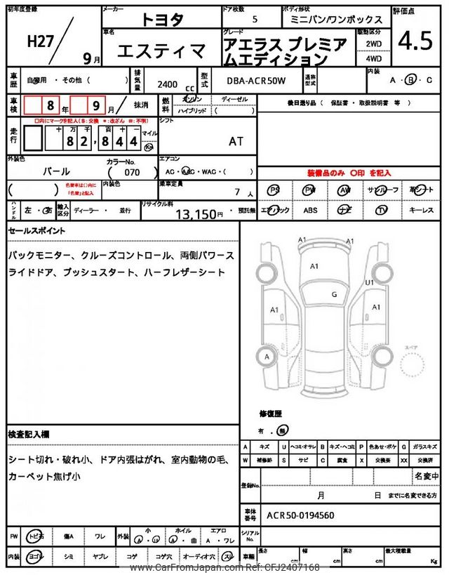 Toyota Estima 2015 for sale in Malawi (Mwk. 14,315,335)