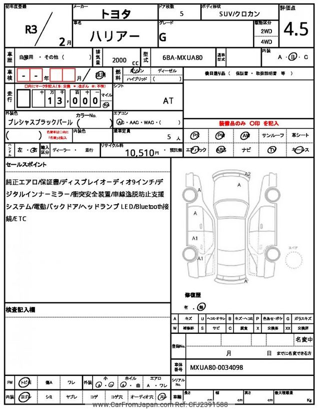 Toyota Harrier 2021 for sale in Malawi (Mwk. 30,172,456)