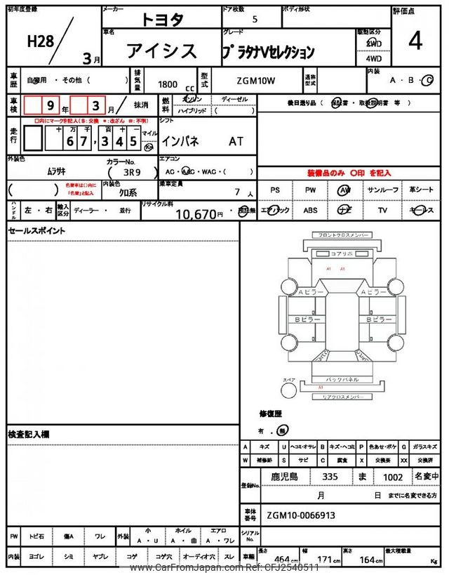 Toyota Isis 2016 for sale in Malawi (Mwk. 11,082,778)