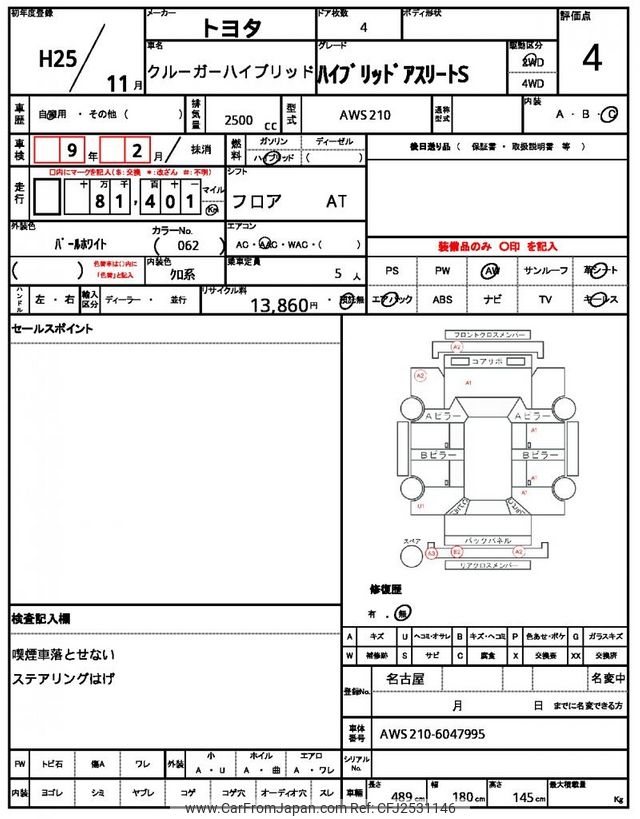 Toyota Kluger Hybrid 2013 for sale in Malawi (Mwk. 16,082,352)