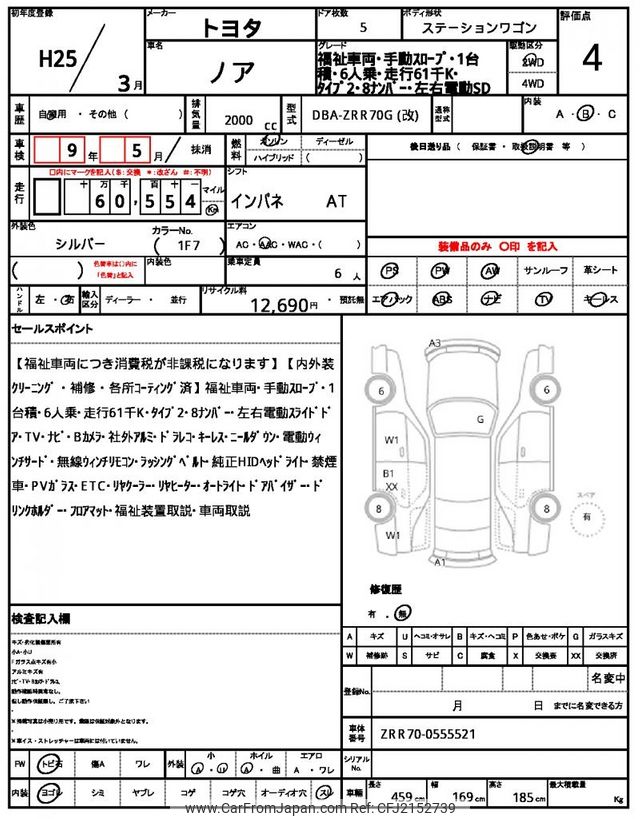 Toyota Noah 2013 for sale in Malawi (Mwk. 14,927,317)