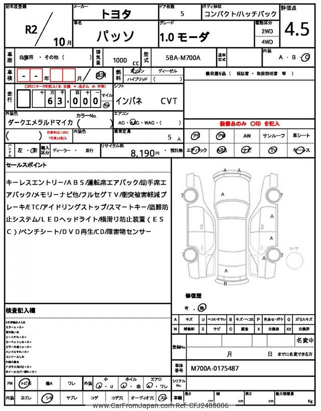 Toyota Passo 2020 for sale in Malawi (Mwk. 9,603,221)