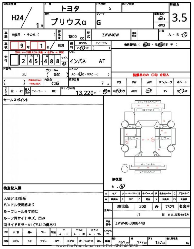 Toyota Prius α 2012 for sale in Malawi (Mwk. 7,153,260)