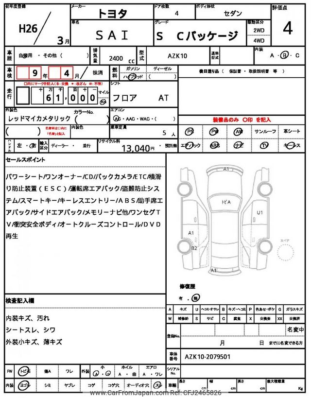 Toyota SAI 2014 for sale in Malawi (Mwk. 11,445,245)