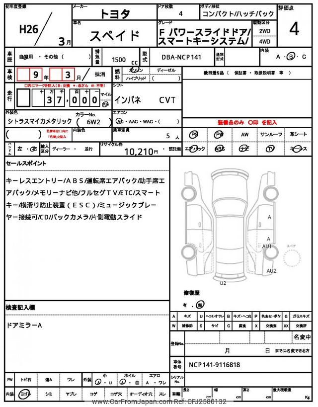 Toyota Spade 2014 for sale in Malawi (Mwk. 8,312,754)