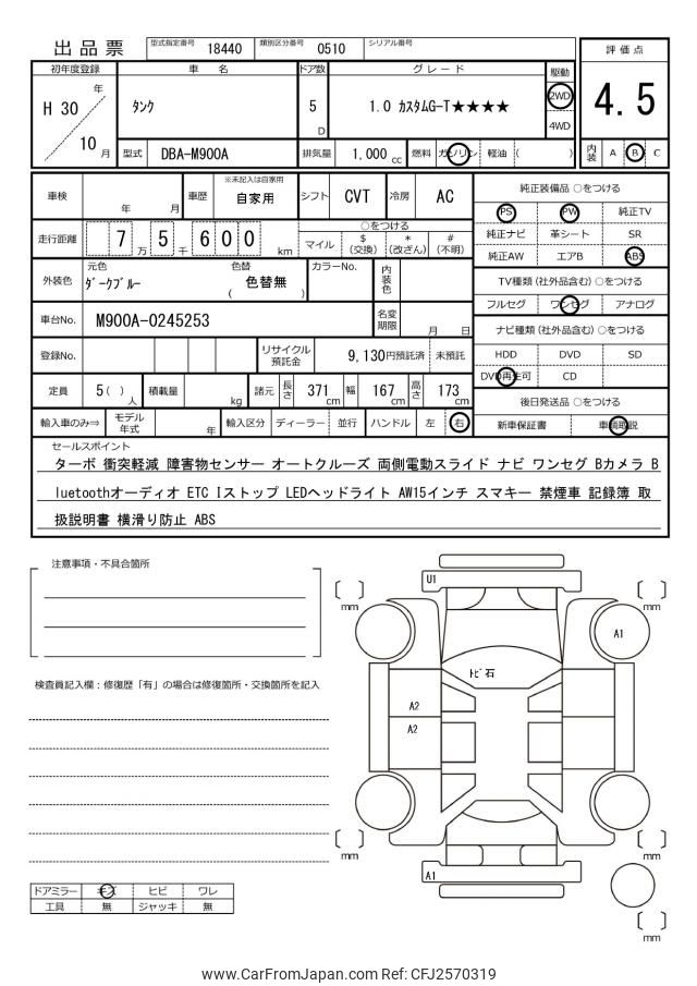 Toyota Tank 2018 for sale in Malawi (Mwk. 11,393,586)