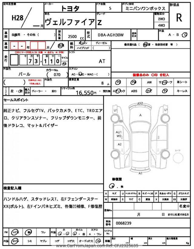 Toyota Vellfire 2016 for sale in Malawi (Mwk. 16,632,923)