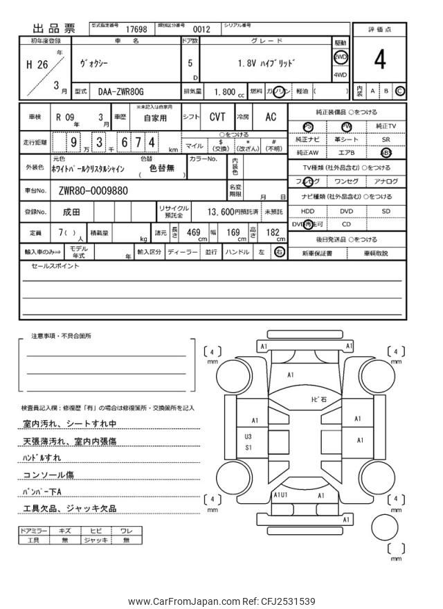 Toyota Voxy 2014 for sale in Malawi (Mwk. 15,254,004)