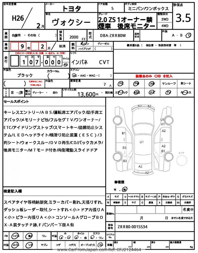 Toyota Voxy 2014 for sale in Malawi (Mwk. 11,650,923)