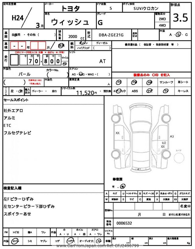 Toyota Wish 2012 for sale in Malawi (Mwk. 7,834,610)